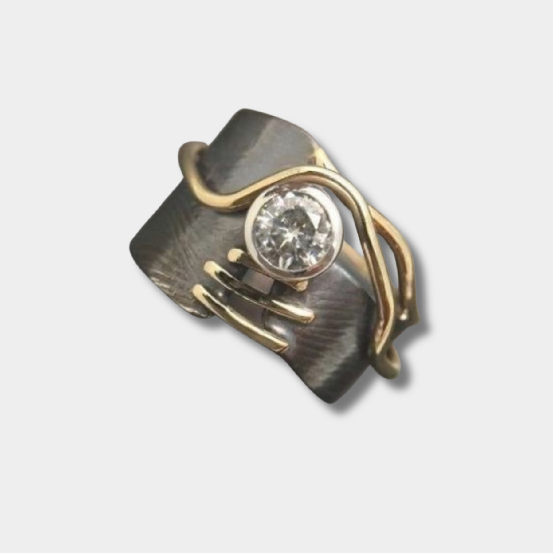 Το σκούρο ασήμι συναντά τον ρέοντα χρυσό – μια καλλιτεχνική αντίθεση.