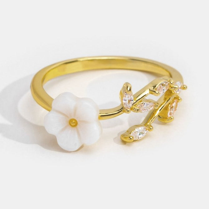 Μίριαμ – Χρυσό δαχτυλίδι με λευκή λουλουδάτη διακόσμηση.