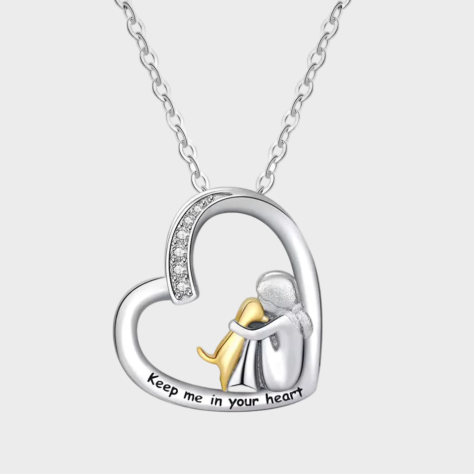 Αυτό το κολιέ είναι ένας τρυφερός τρόπος να κρατάτε την αγάπη κοντά σας. Ο σχεδιασμός δείχνει μια γυναίκα και τον σκύλο της σε μια ζεστή, φροντιστική αγκαλιά — απλός, τρυφερός και γεμάτος νόημα. Είναι ελαφρύ για να το φοράτε, εύκολο να το συνδυάσετε με οποιαδήποτε εμφάνιση, και μια όμορφη υπενθύμιση για τον δεσμό που θα διαρκέσει για πάντα.