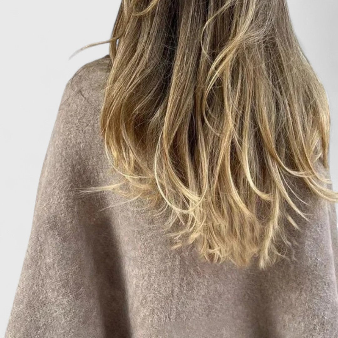 Ο συνδυασμός μαλακής υφής, ανοιχτού μπροστινού μέρους και ρηγών ώμων δίνει μια casual αλλά περιποιημένη εμφάνιση.