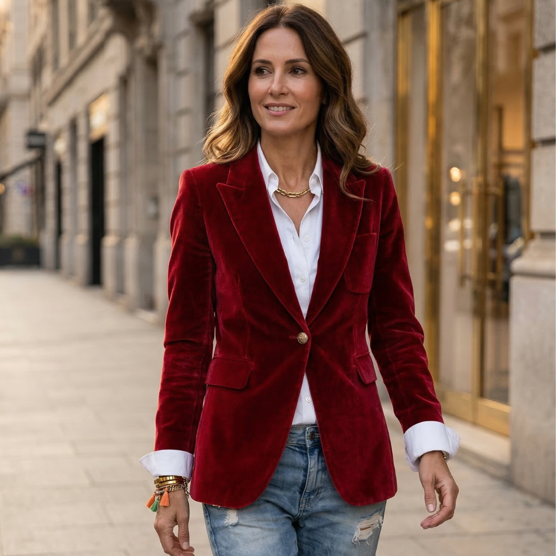 • Κομψή και δομημένη σιλουέτα: Αναδεικνύει το σώμα με ισορροπία και διακριτική θηλυκότητα.