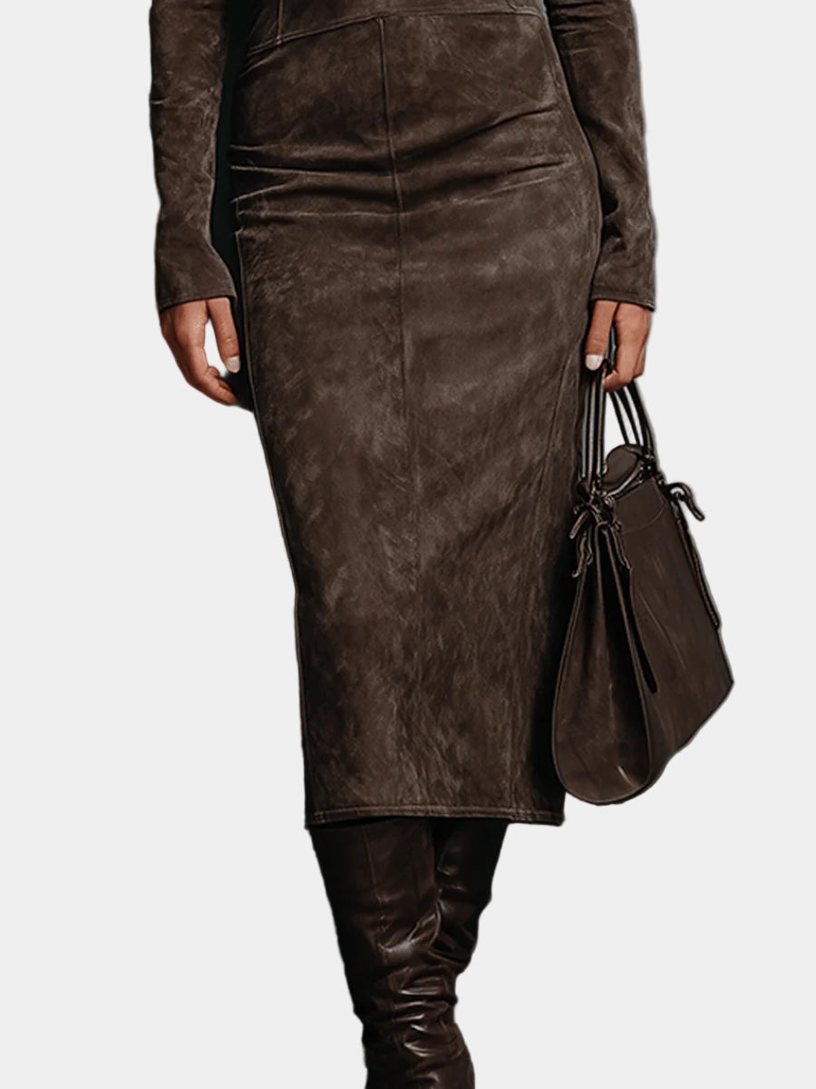 Κατασκευασμένο από απαλό, υψηλής ποιότητας σουέτ ύφασμα, αγκαλιάζει το σώμα, προσφέροντας μια στυλιζαρισμένη και διαχρονική σιλουέτα