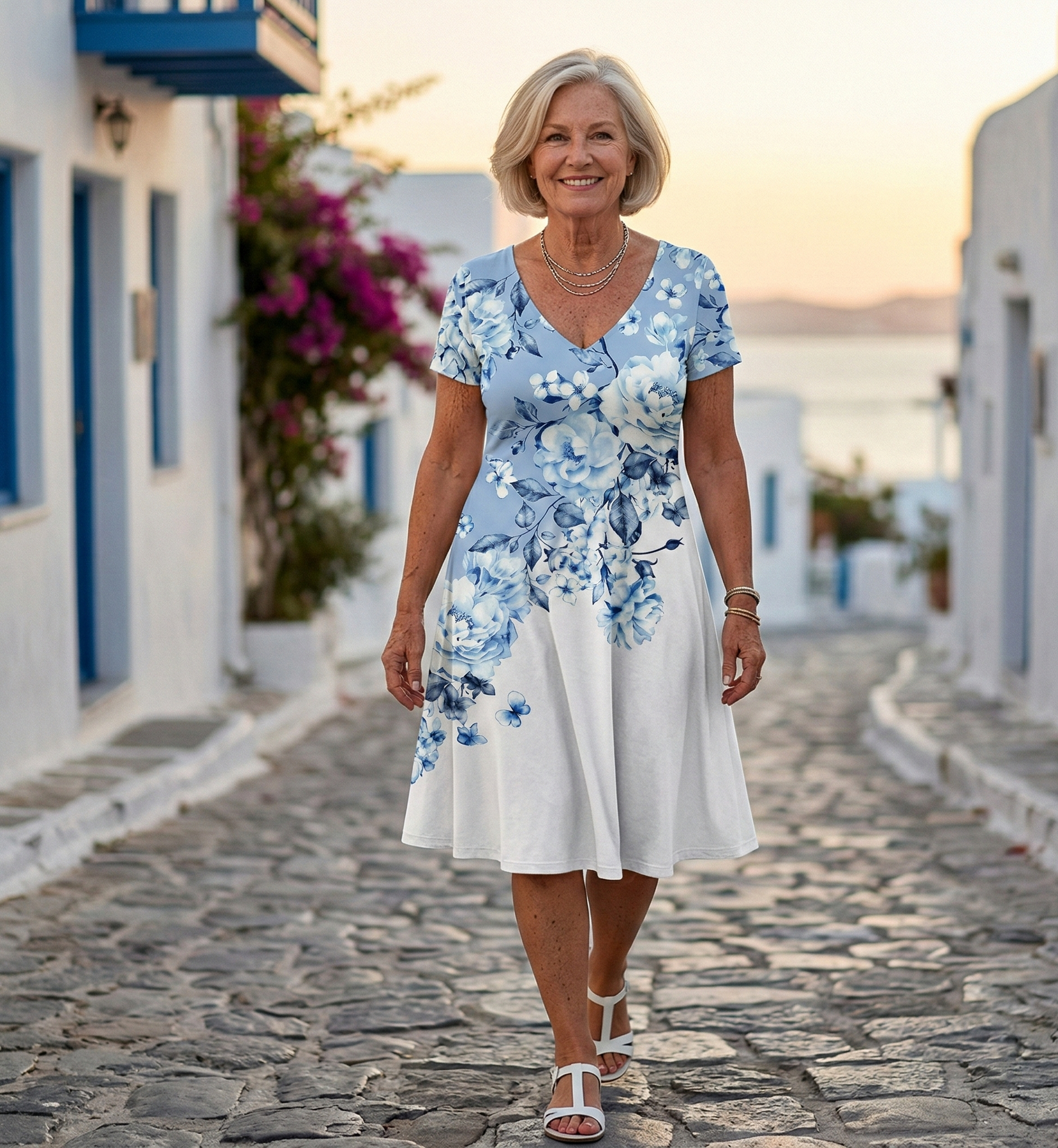Λαιμόκοψη V και κοντά μανίκια: δροσερή αίσθηση και ελαφριά εμφάνιση για τις ζεστές ημέρες