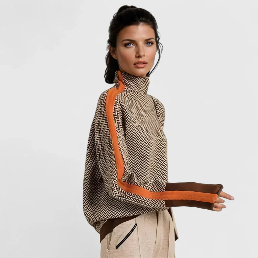 Αριστονίκη - Πουλόβερ με ψηλό γιακά και κομψές αντιθέσεις ρηγών