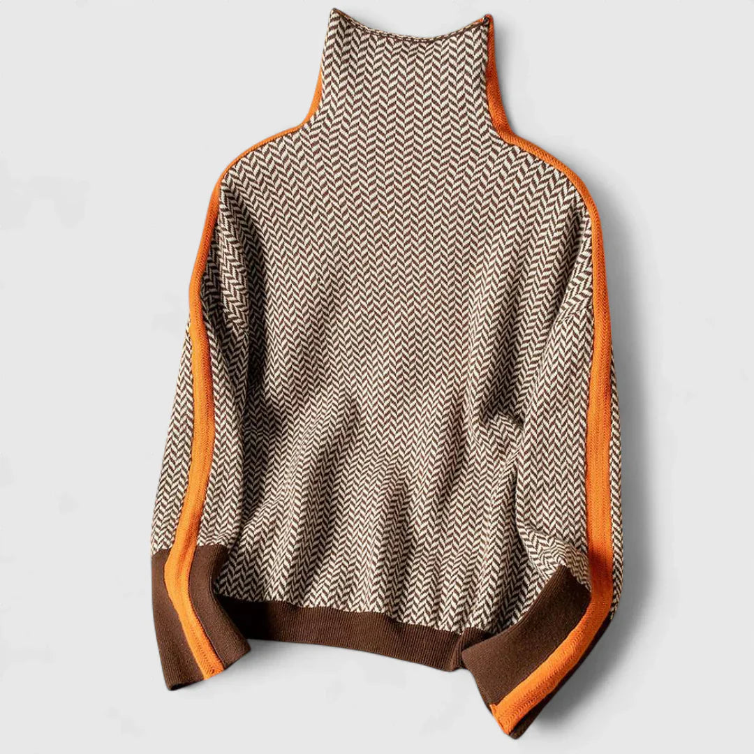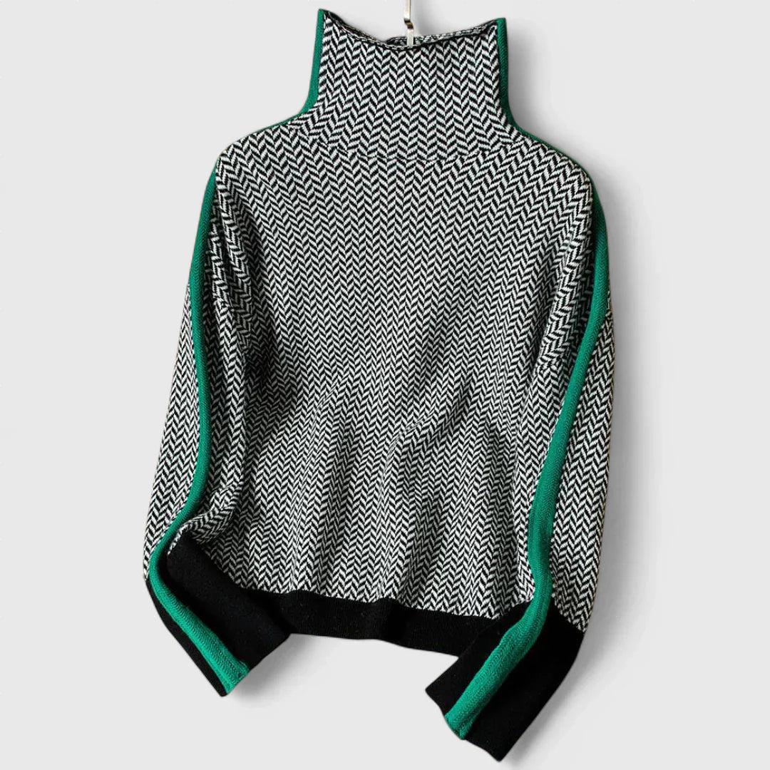 Πουλόβερ με ψηλό γιακά και κομψές αντιθέσεις ριγών
