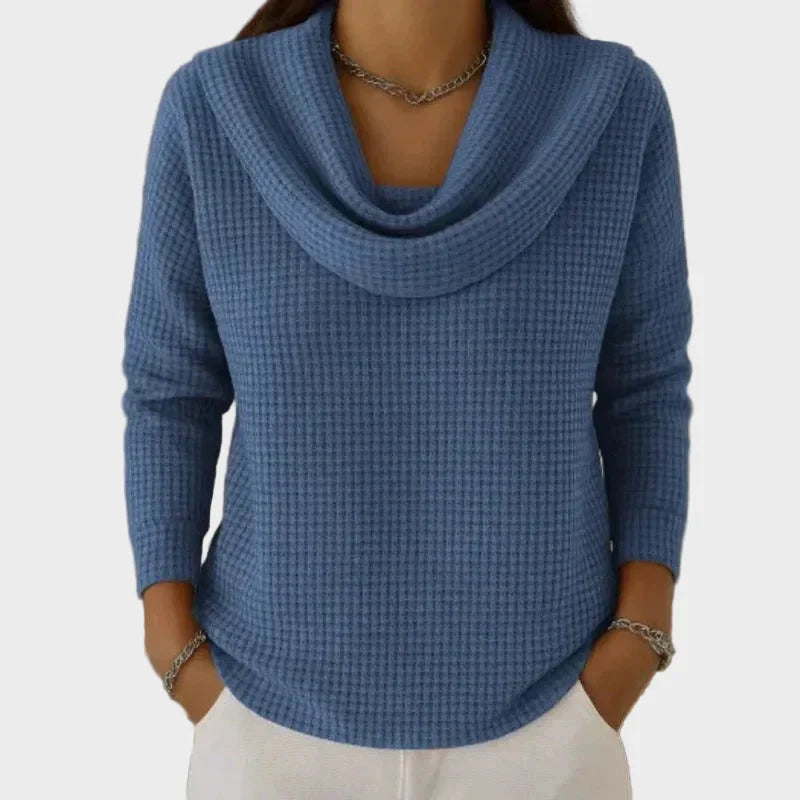 Μαρίνα – Ζεστή πλεκτή μπλούζα με υφή βάφλας και κομψό ντραπέ γιακά