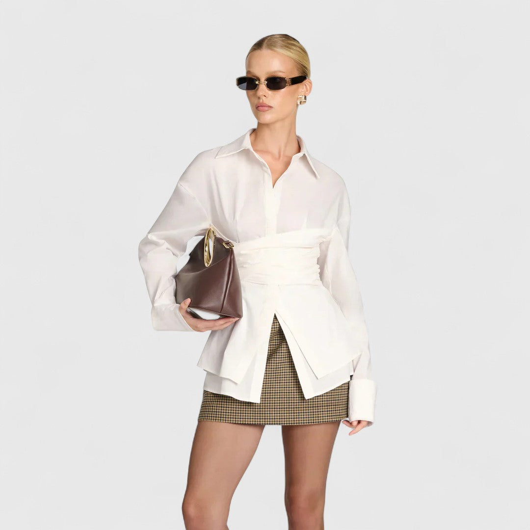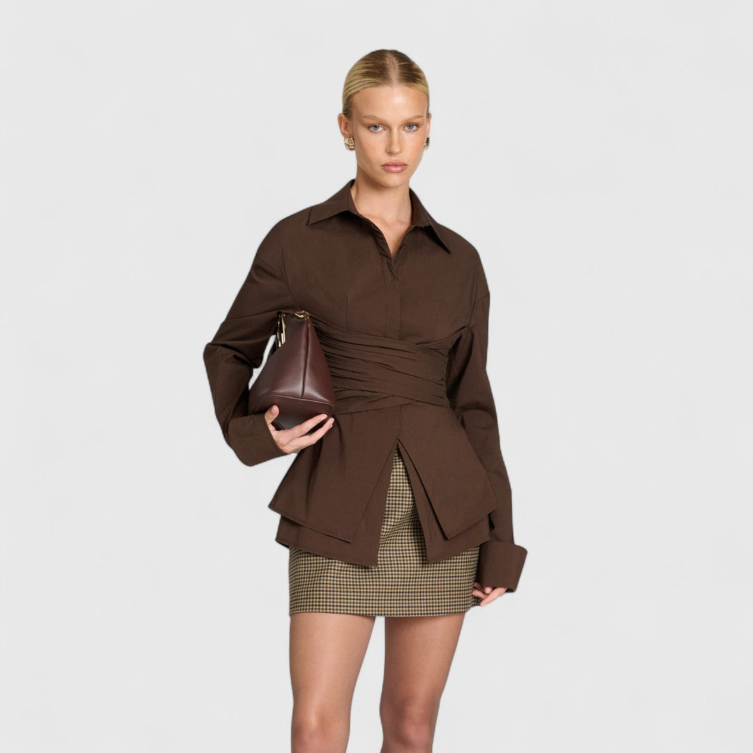• Κόψιμο: Ελαφρώς εφαρμόζεται με εφέ τύλιγμα για κολακευτική γραμμή.