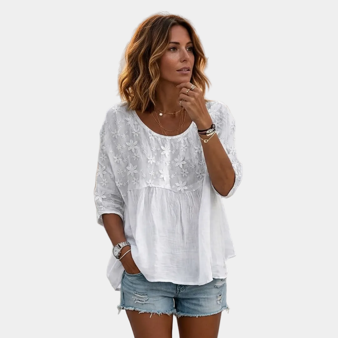 Nicole - Μπλούζα patchwork με κεντημένα λουλούδια