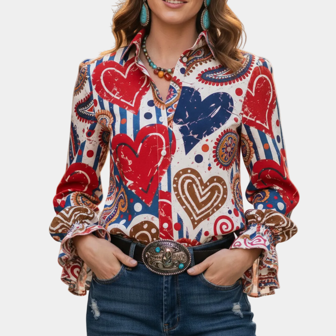 Vintage Πουκάμισο με Στάμπα Καρδιάς